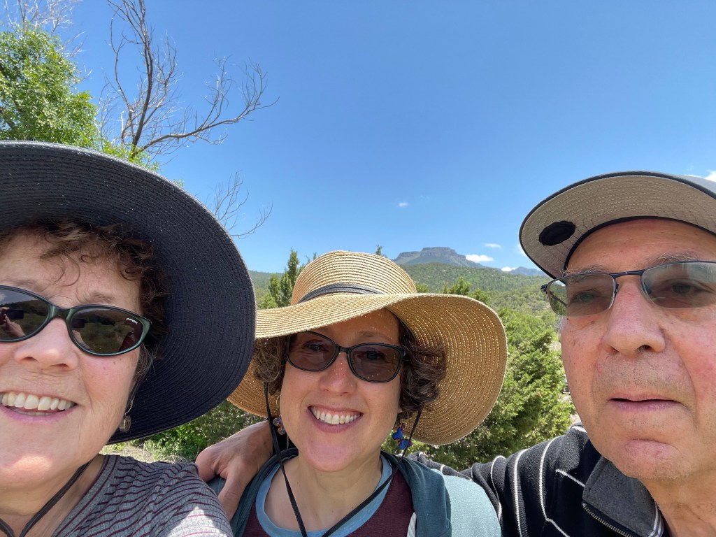 Zoë and Bud have June birthdays a day apart so we often celebrate with an excursion. This year we went farther afield than usual, heading to Silver City in southern New Mexico. I love a road trip especially driving through some favorite Colorado and New Mexico territory. We took I25 south and stopped for lunch at the new state park – Fisher’s Peak – where we had a picnic and short walk.