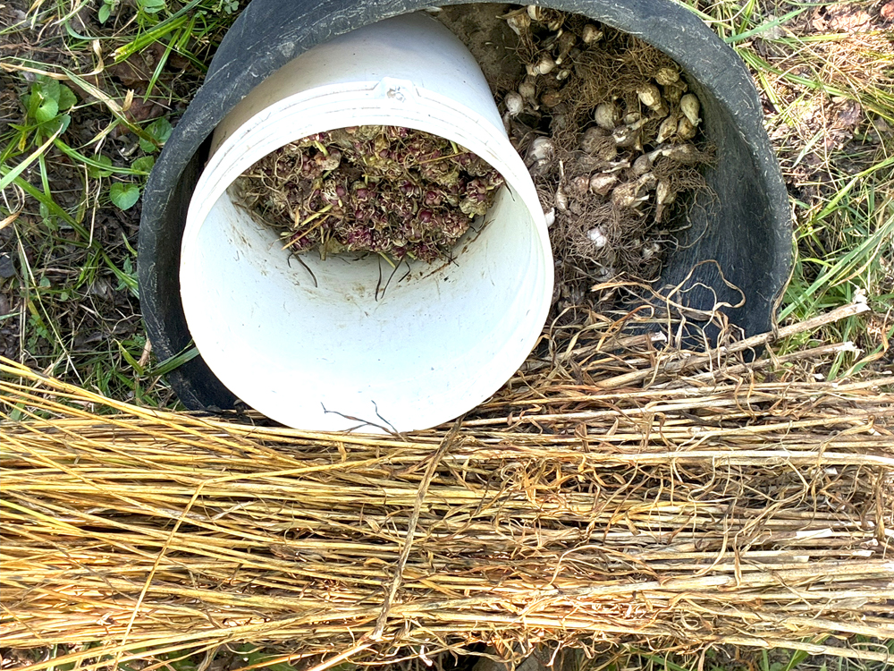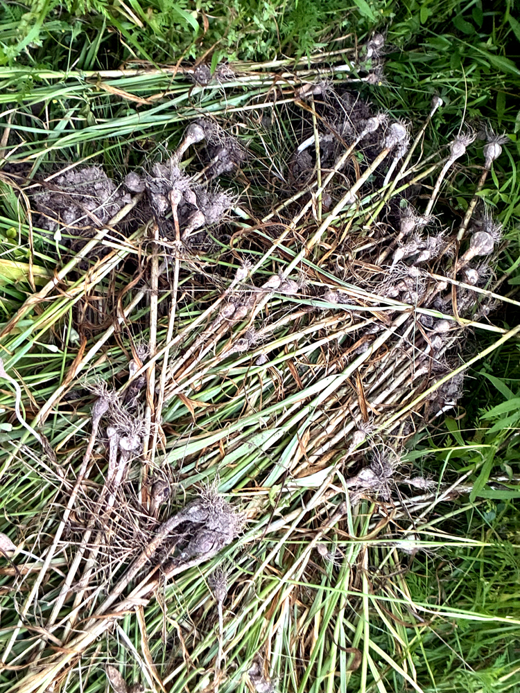 I’ve boiled some of the seed heads in water just for a drill and made an insect deterrent for the squash plants and eggplants. It’s pungent and I may have stumbled on a positive side to this fiasco. My plan is to boil all the heads when I have a good fire going this fall, give some to other gardeners, or let them freeze over the winter, possibly a combination of them all. Then the spent garlic can safely go to the compost pile. Without destroying the garlic’s ability to reproduce, all my work would be pointless.