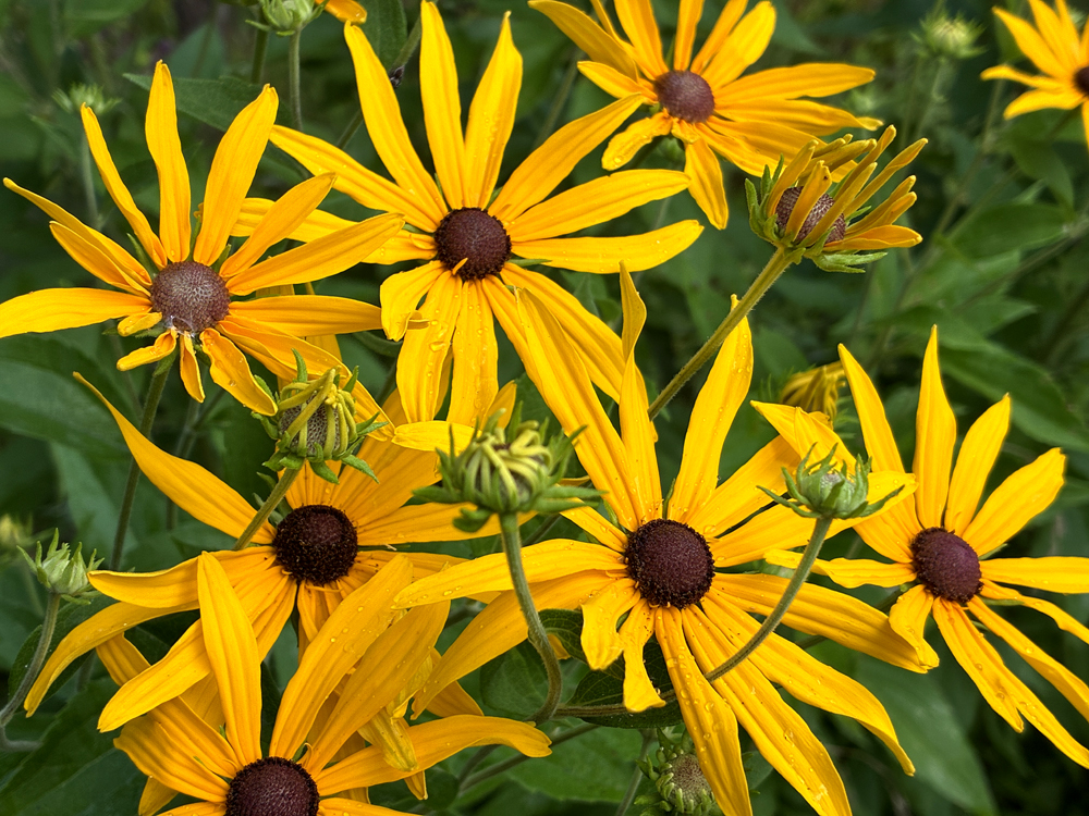 In these dog days, the garden scenes change daily. The once ever-present gray-headed cone flowers have become seed for the finches; the tiger lilies in their brilliant orange, drop petals. As I survey the landscape in quiet moments, I lift my head to the sky, the clouds, watch the turkey buzzards soar high above, see the cardinals flit towards shade in the shrubs and feel grateful I was asked to care take of this piece of earth. I take this responsibility seriously, as we do when we raise a child. Over 43 years I’ve watched it change from a hay field to three acres with more biodiversity than imaginable.
