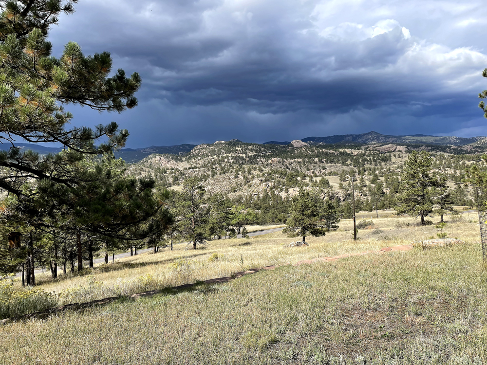 We’ve had lovely weather with warm days and cool nights. The clear, raking light reveals every detail of the ponderosas and the rocky hills across the way. Like we’ve had our eyes washed. This is my favorite season. I treasure the languor of these fall days. We enjoyed a wonderful rainy day last week. The grass is turning green again. The chamisa is putting on a show too.