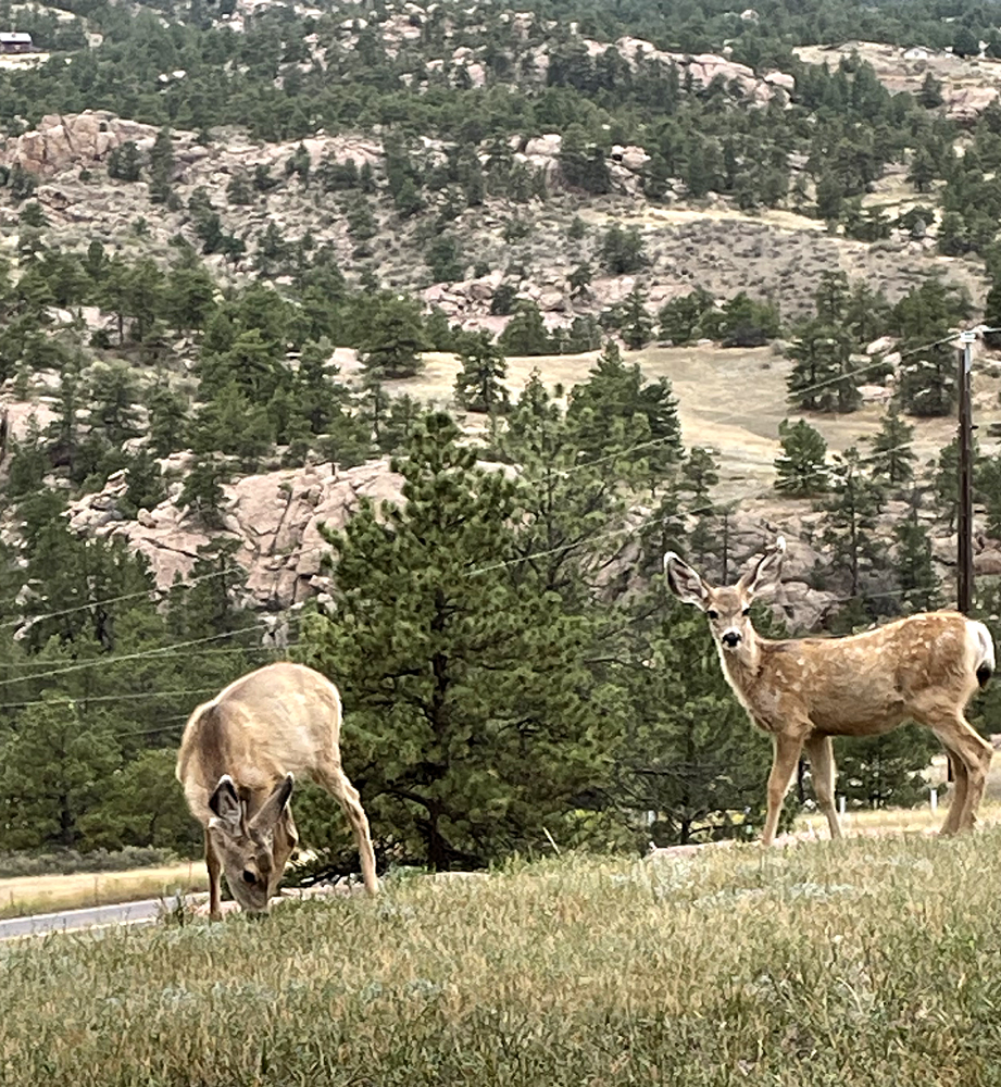 A few weeks ago two bull elk strolled up the driveway followed later by a herd of fifteen mule deer. Everyone is on the move. We occasionally have a grey fox and a skunk visit the bird feeders to scavenge for dropped seed. Two beautiful creatures. Soon we’ll have to retire the feeders as bears may be tempted by the easy food. We’ll miss the songbirds arriving on their way north and only catch glimpses of the usual residents – chickadees, finches, woodpeckers, juncos, jays and nuthatches.