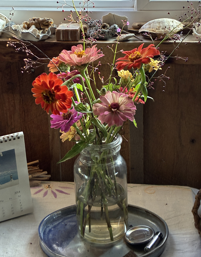 Much time has passed since I’ve talked with you. We’ve gone from a drought-filled summer to a monarch migration, the last of the monarchs passing through in early November. Luckily we still had nectar plants for their journey, thanks to the tithonia, (Mexican sunflower) African tuturu, white cosmos and the beloved zinnias. Usually many species of the native asters provide fuel for the monarchs, but our severe drought reduced their brilliance and many of them bloomed later than usual.