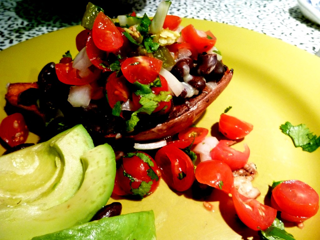 Stuffed sweet potato – recipe at https://howilearnedtocookanartistslife.blog/2019/04/05/pico-de-gallo/