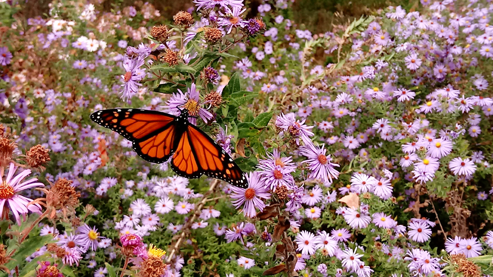 I mark the end of summer when the monarchs leave. I’ll watch their numbers grow from one day to the next when the asters begin to bloom in mid-September. I’ll see 20 monarchs, then 40 and suddenly the monarchs increase exponentially. They’re everywhere. I know some serious business goes down.