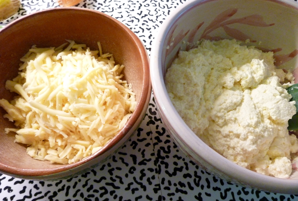 Thinly slice two largish yellow onions and sauté over medium high heat in two tablespoons olive oil. When the onions have begun to soften, lower the heat and cover the pan. Continue to cook over low heat, about 25 minutes, until browned and caramelized. Watch so they do not burn, stirring every now and then. Uncover in the last 5 minutes and raise the heat a bit to further brown. Stir frequently. Cool.