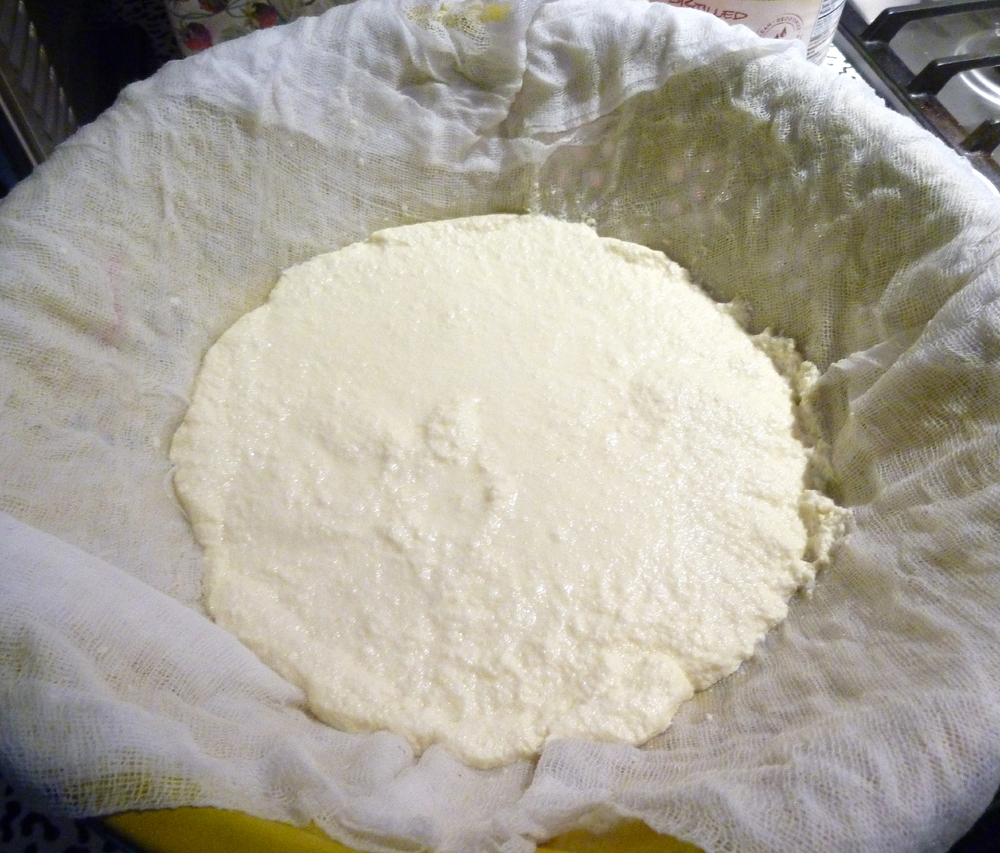 Zoë and Bud rolled the pasta dough into sheets. I cooked the milk and cream for ricotta.