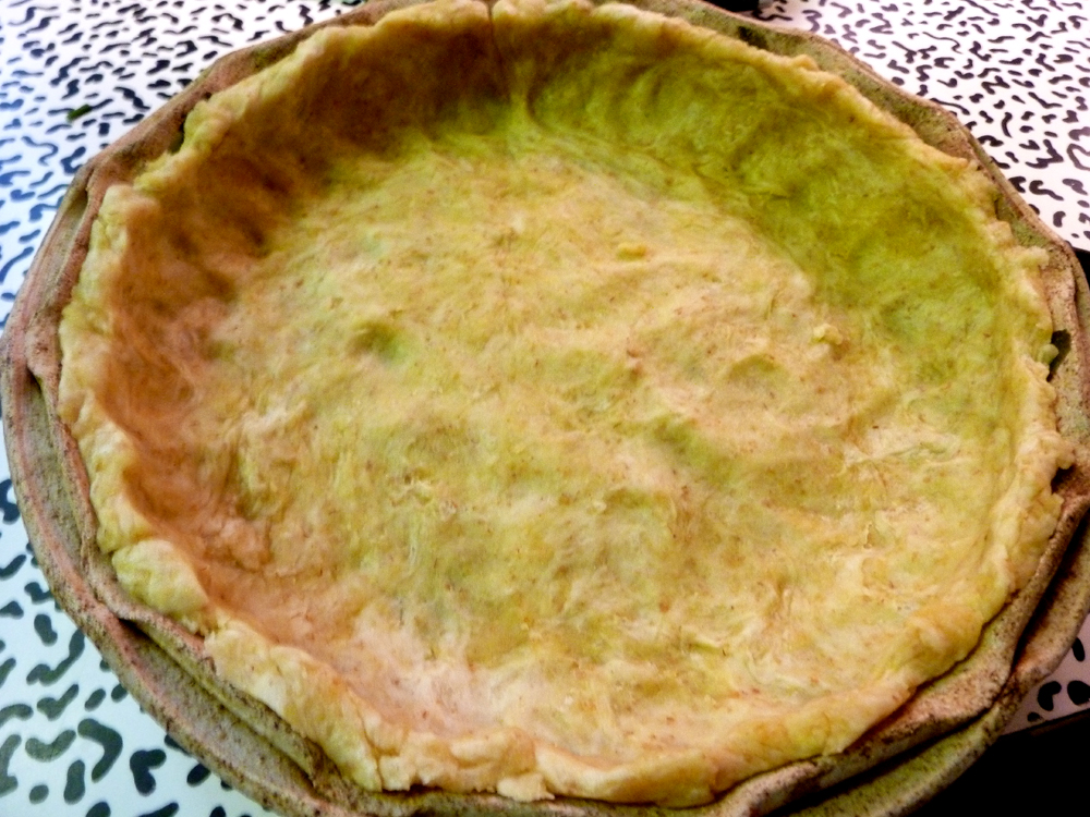 Now I’m ready for simpler meals. One of my favorites is a savory tart accompanied by a salad. I use a wonderful, easy recipe from Patricia Wells for a simple, crisp, crust.
