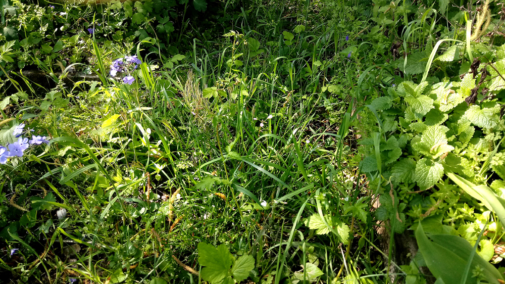 In my fantasies, when I’m teaching young gardeners, I bring them to spots like this, where the wayside herbs have filtered into the grasses, creating a rich network of plant life. Each gardener, in their own spot, would list all the plants they find. This would be part one of the final test. The second place for identification would be the compost pile, part two of the final test. After working for months and seeing the multitude of life, to be able to say what genus, what family and maybe the use of the plant, would demonstrate a familiarity with the life in that micro-environment.