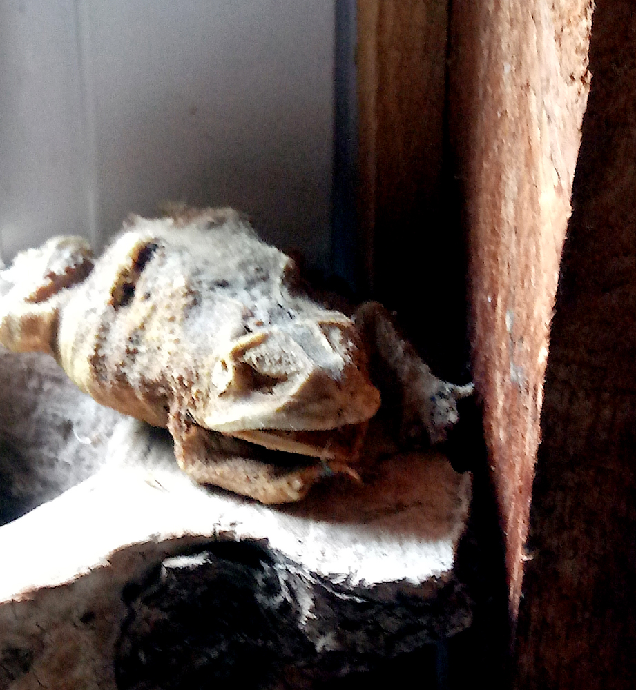 One early spring day years ago, out preparing the garden, I found this toad. Frozen and then dried. When my sweetheart, Ron, saw it, he laughed and said I’d found the Buddha incarnate. This toad has been my inspiration for 25 years. When you look at the face, how can you not burst out laughing? Rain or no rain, life seems good, and this wise, funny toad helps me face it all.