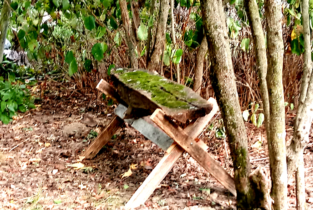 Reduced garden chores meant I could take the opportunity to build a cradle for the bench in the Meditation Garden, a task on my list for several years. The large slab of wood sat close to the earth and visitors have complained about the difficulty in rising from such a low position. And it was wobbly too and might throw you off balance when you tried to get up. So I lugged old oak 2 x 8’s over to my saw horses and set to work making 2 x 4’s for this cradle. I will spare you the grueling details of my trials and tribulations, the different hardware I tried before carriage bolts did the job. It took me a lot longer to put this together than I’d thought, but what doesn’t? And I had to take it apart two times before I finally got it right. When I carted it out to the garden in the wheel barrow and put the slab on and saw how nicely it fit, how comfortable and solid it felt, I shouted Yahoo!! for all the neighbors to hear. To sit on this bench and watch the gold finches feasting on the sunflowers, hear their happy chirping, and to watch them come right to the bird bath, ahhhh…
