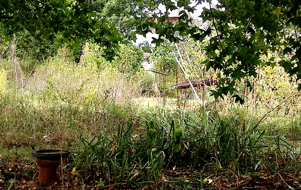The underground river the native plants and deep-diving weeds have created lets these gardens thrive without rain. I can’t describe in technical terms what takes place deep in the earth, science was my worst subject, but I have a poet’s license and I pull it out at times like this. All the roots from thousands of plants surrounding and near the vegetable gardens go deep, deep down. The roots cross over and around each other and send feeder roots in every possible direction. They create a bed, a liner, a receptacle for storing water. When water in the upper layers becomes tough to come by, the roots of the flowers, herbs and vegetables dip into this underground lake, put their straws down and suck up water by osmosis to sustain their lives. This image belongs in a children’s book. (Hmm, maybe it was math…)