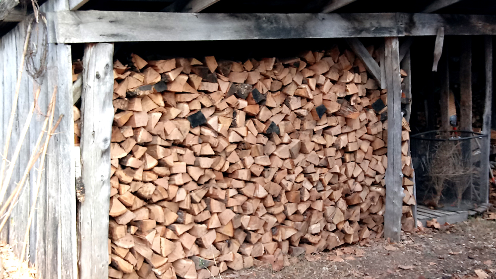 Jeremy, Johnny, John, Patrick and 3 year old Easton all filled the woodshed with beautiful oak. I stood out visiting with them as they stacked, told stories and teased each other, and of course me. There’s something special about being out in the cold, doing a job together, watching the woodshed fill up.