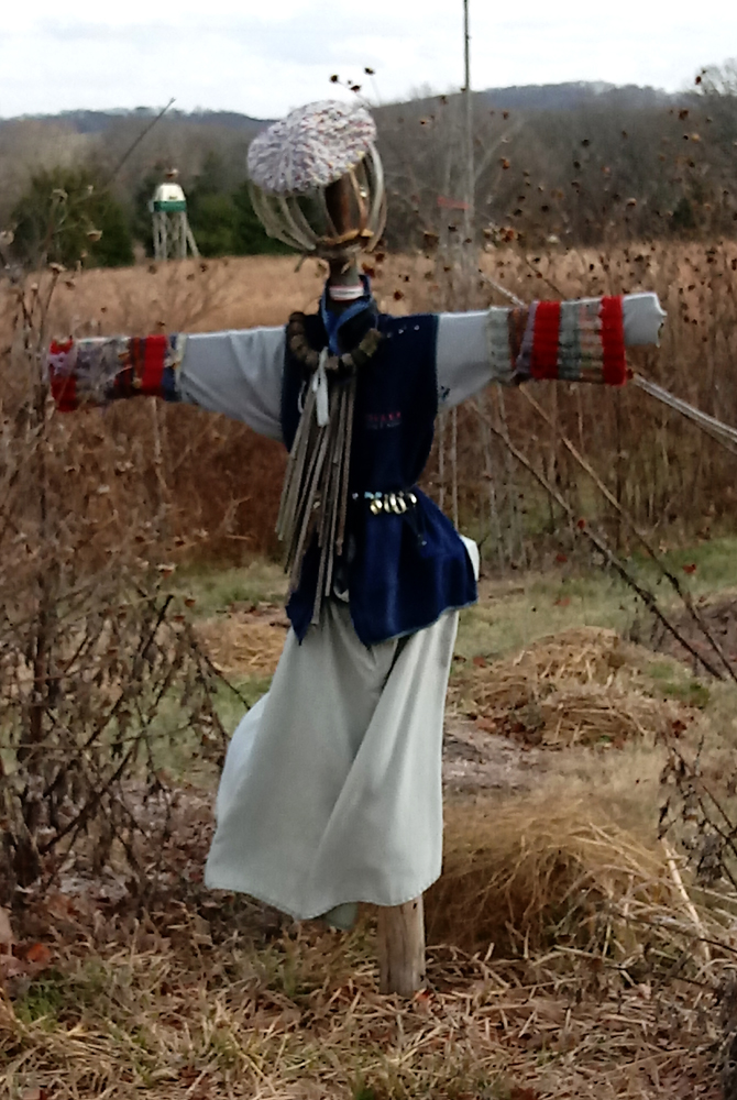Our Lady has her autumn garb. And a new head. With no more bushel basket gourds, I felt puzzled. Then I looked at some frames for unfinished baskets I inherited when Walt, my friend and fellow basketmaker had passed. He did unexpected things that made you laugh or smile, I can give him this. I know he’d be tickled to see one of his frames become the head for Our Lady. And she loves the way the wind blows through her mind, clearing the cobwebs and freeing her to dream.