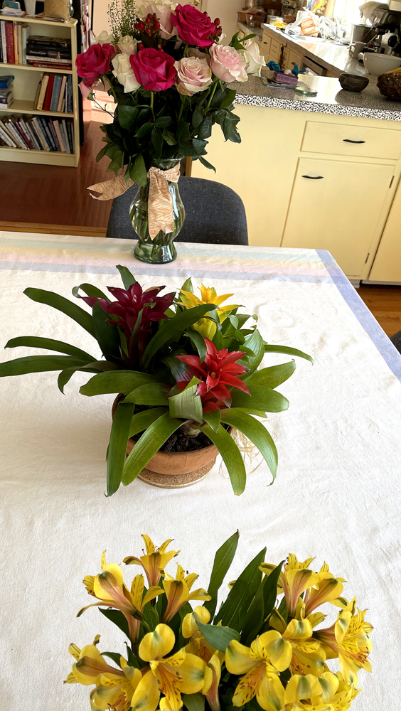 After a long break without artists in the Shark’s Ink. studio artist Terry Maker arrived to make a new print. Each day I prepared a special ‘artist’s’ lunch. As is my wont, I mostly served salads accompanied by Moxie bread – brought by Terry from the original bakery near her home in Louisville, Colorado. (We also now have a Moxie Bakery in Lyons, lucky us.)