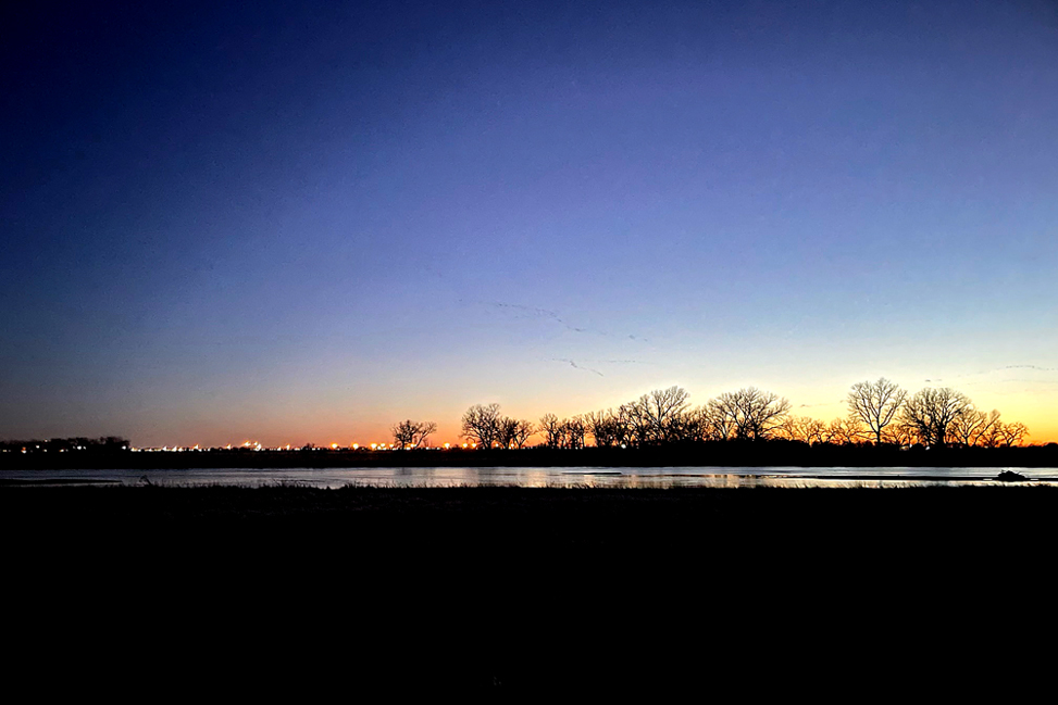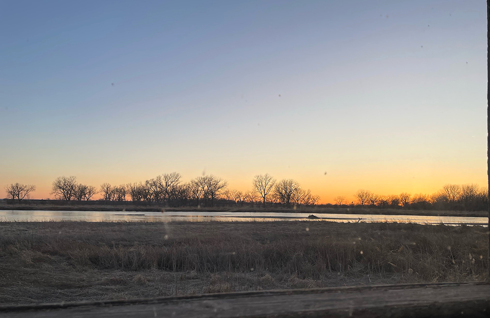 Thousands of cranes flying in long lines, swerving, flapping, forming v-patterns in the darkening sky. Swooping over the blind where we perched to watch this overwhelming sight accompanied by the cacophony of their calls.