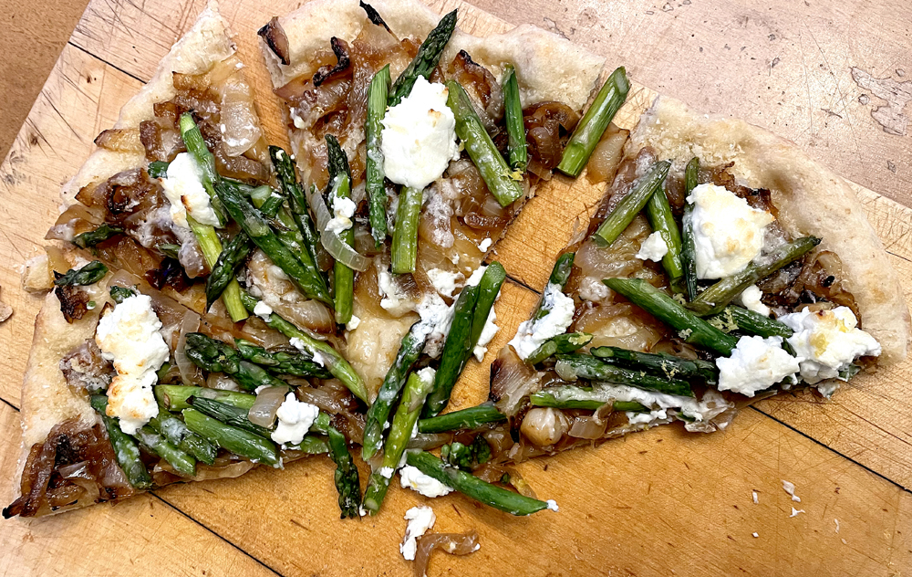 We’ve again been eating a lot of asparagus. Here’s an asparagus pizza and an asparagus tart.