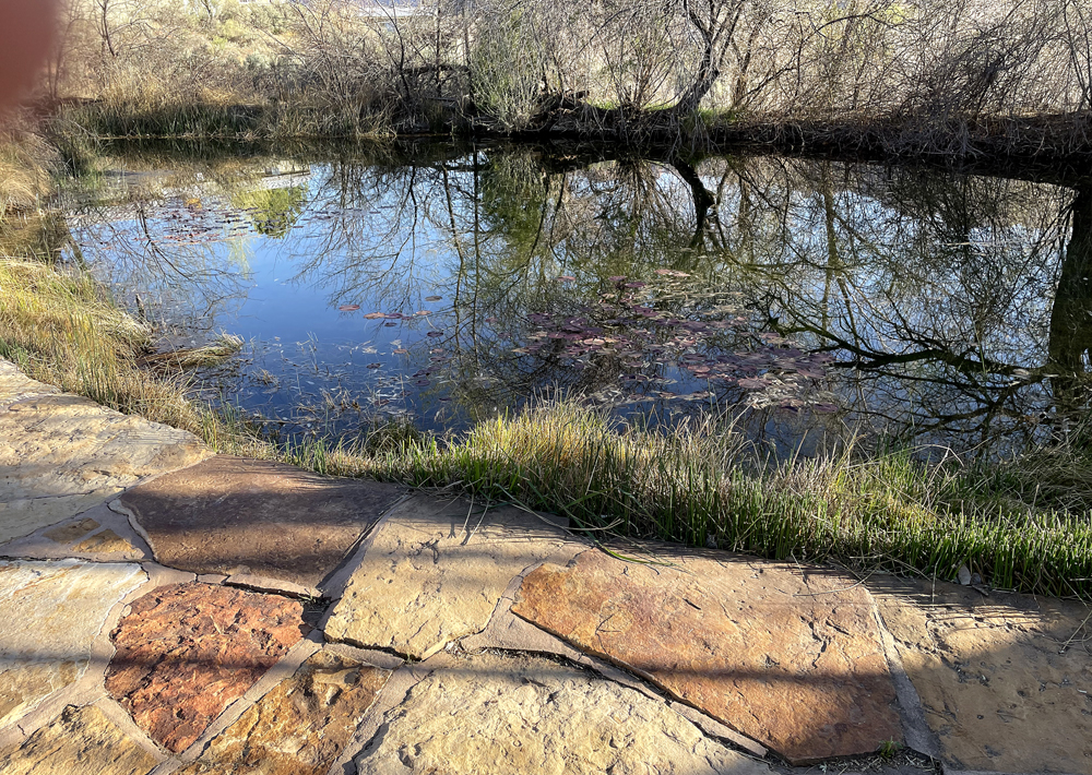 Our charming host prepared homemade yogurt and granola, jams, breads and really good coffee for breakfast. We enjoyed late afternoons by the shaded pond and in the surrounding gardens. We took a few hikes, saw a wall of petroglyphs, and found pretty good food in town.