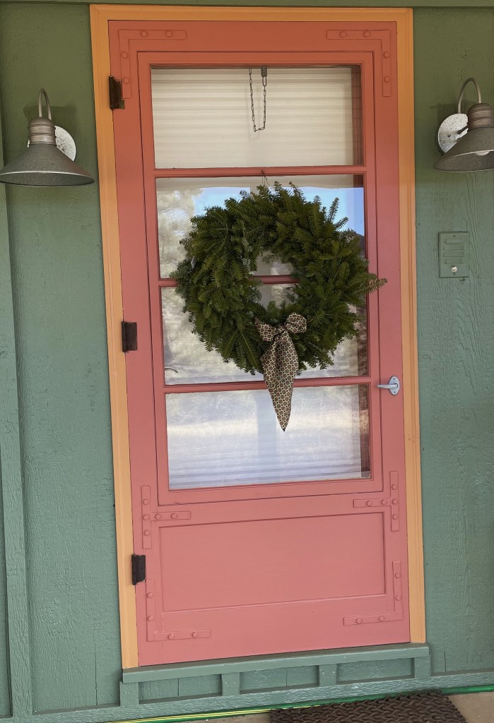 What a gorgeous winter sky, a breathtaking orange with the wild branching of the bare tree. I’ll mix up some of the seedy crackers to bake after my nutroll comes out of the oven. Who painted that front door? Looks so festive with that lovely wreath. Lucky recipients of those home-made boxes with yummy cookies! Nice team work.