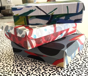 And I have begun my holiday baking. Each Christmas I prepare special cookies for friends. They go into beautiful boxes Bud has fashioned from discarded prints.